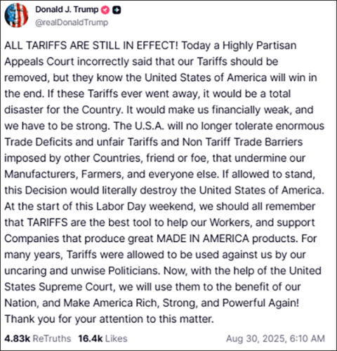 当地时候8月29日,好意思国联邦巡回上诉法院明确裁定总统特朗普在枯竭国会明确授权的情况下实施的大量关税门径超出了总统法定权限。换句话说,即是罪人越权。