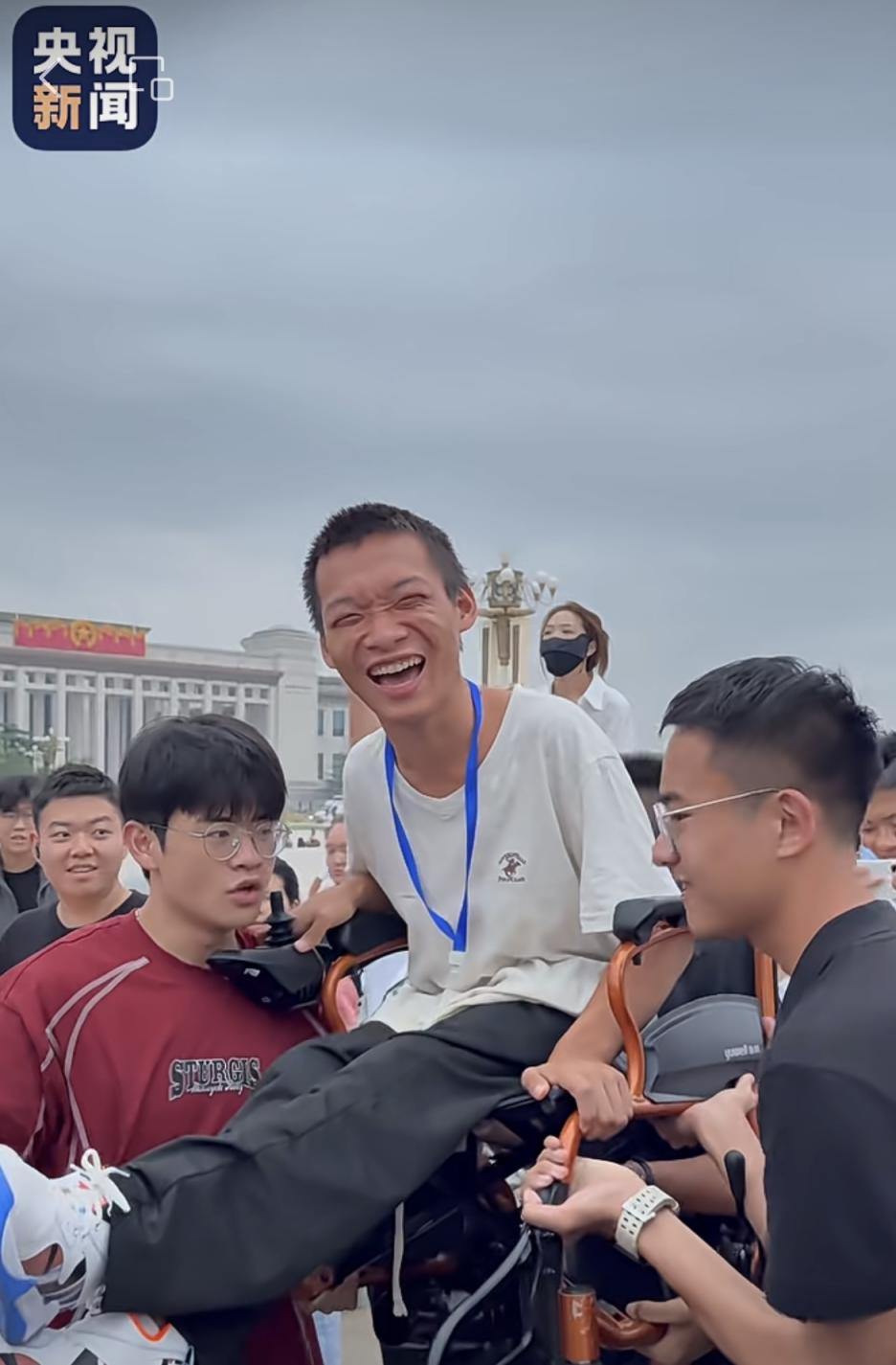 “一群‘余华’举起了‘铁生’”!连日来,一段暖心视频流传网罗:长沙女生小范带着脑瘫一又友小龙到北京看升国旗,目击小龙乘坐轮椅视野较低,身旁几个生分东谈主协力抬起小龙,稳稳托举直到国歌甘休。