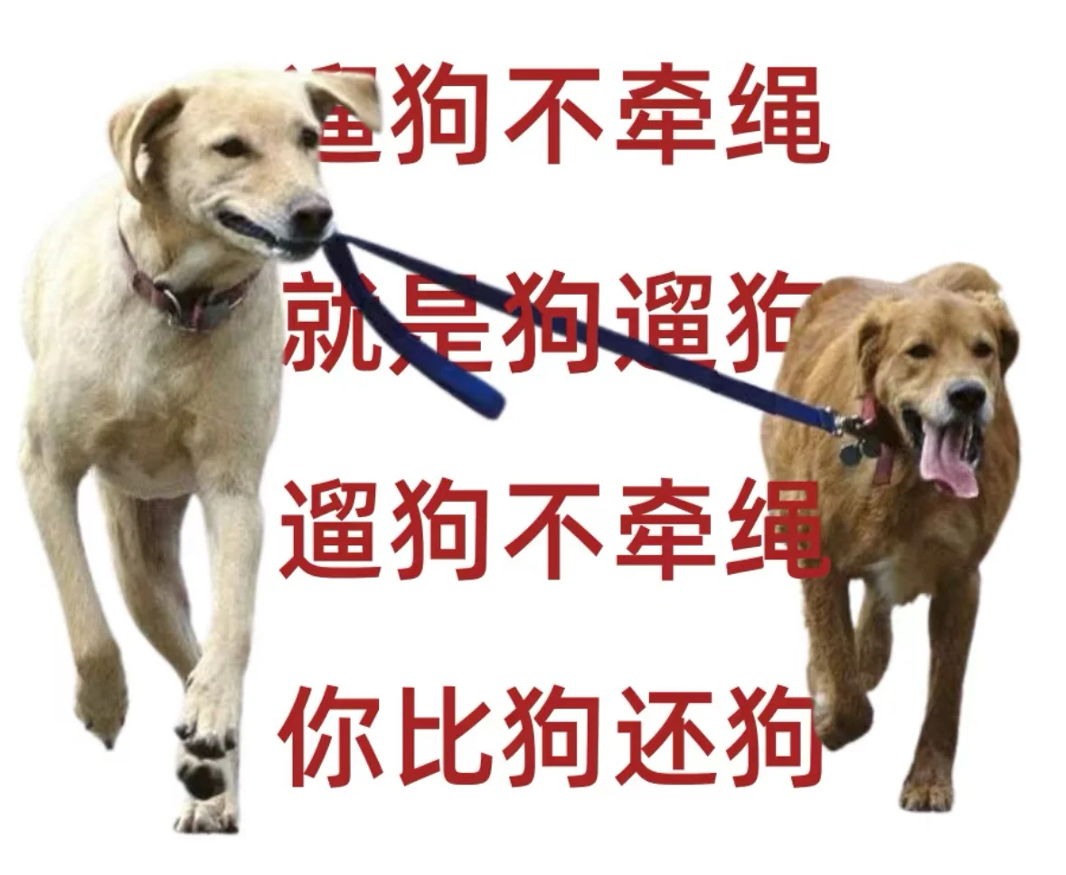 可笑归可笑,照旧要说一句:遛狗不牵狗,好比狗遛狗。