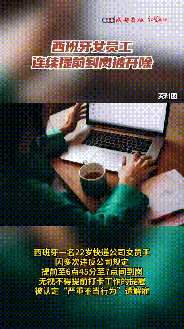 西班牙别称女职工因屡次过早到岗,近日被认定为“严重不当步履”而遭罢黜。据悉,这名22岁的女子在一家快递公司责任。自2023年以来,她屡次被指示不要在早上6点45分至7点之间到公司,因为她的认真上班时辰是7点30分。尽管公司已明确奉告,她不得在上班前打卡或初始责任,但她仍坚抓天没亮就到办公室。